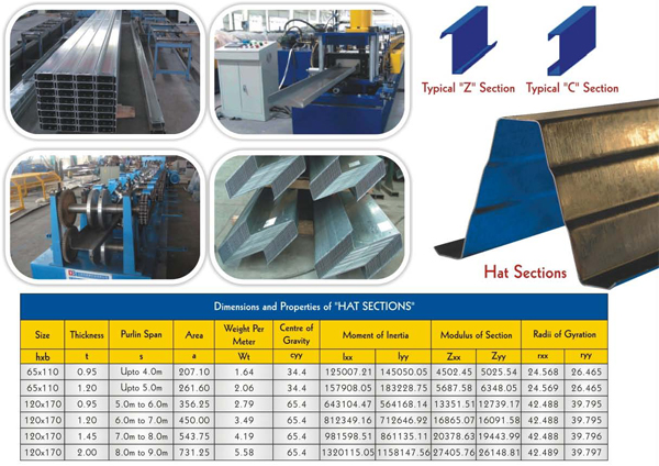 Purlins, Girts and Eave Struts/Purlin are available in 1.5 mm, 2.0 mm, 2.5 mm and 3.0 mm thickness with a pre-galvanized finish.